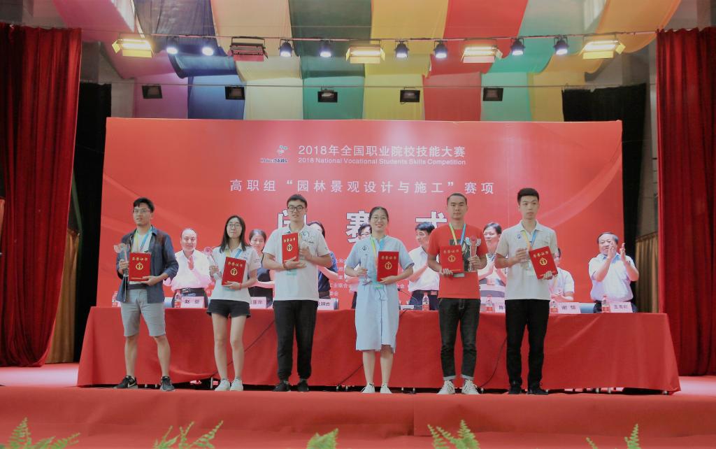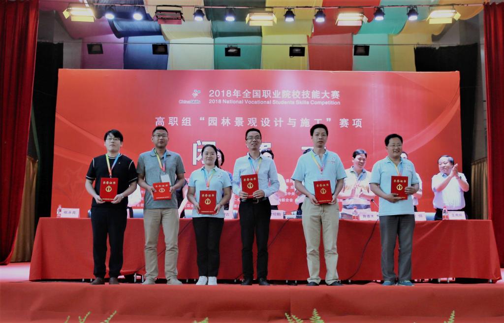 经过两天紧张激烈的比赛,6月11日上午,2018年全国职业院校技能大赛(高职组)“园林景观设计与施工”赛项闭赛式在我院举行。由我院丁玉洁、朱文涛、何伟伟、李俊4名学生组成的代表队,在本次赛项中取得了一等奖的好成绩。