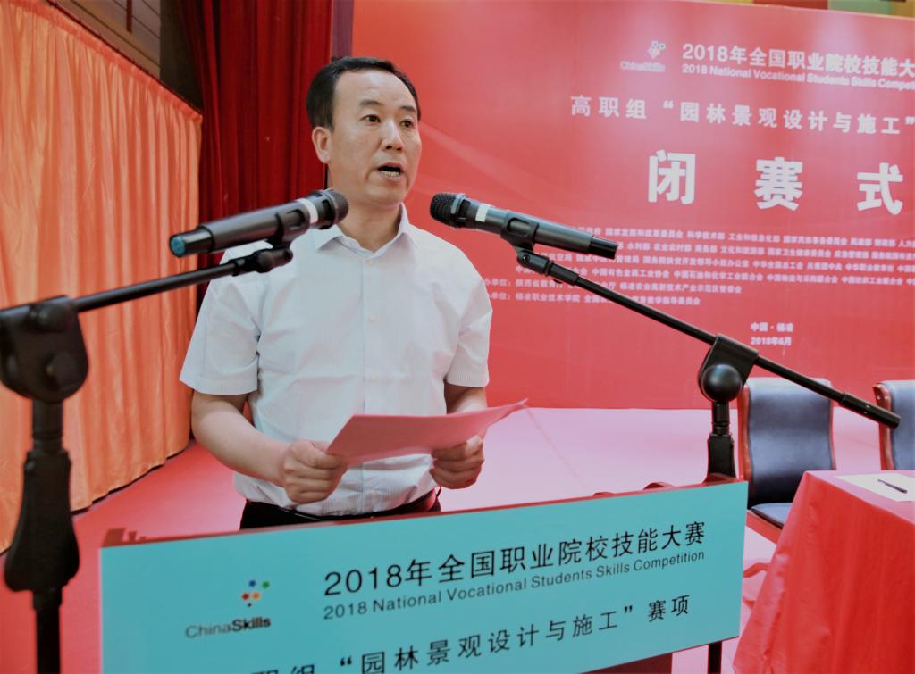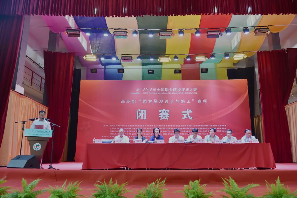 出席闭赛式的领导有:赛项执委会副主任、仲裁组组长、农业农村部科技教育司处长纪绍勤,陕西分赛区组委会委员、陕西省职业技术教育学会会长崔岩,赛项专家组组长、西北农林科技大学风景园林艺术学院院长段渊古,赛项裁判长、台湾景观建筑管理学会陈春木,赛项执委会委员、中央农业广播电视学校副处长魏亚萍,赛项监督组组长、无锡商业职业技术学院旅游管理学院副院长谢强,赛项执委会副主任、我院党委书记赵曼,陕西分赛区组委会委员、赛项执委会副主任、我院院长王周锁。闭赛式由陕西分赛区执行委员会员、我院副院长张永良主持。