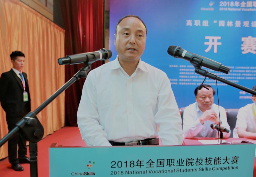 陕西分赛区组委会副主任、陕西省委高教工委委员、省教育厅副厅长、省高教局副局长刘建林致辞,并宣布2018年全国职业院校技能大赛(高职组)“园林景观设计与施工”赛项正式开赛。中央农业广播电视学校副校长田桂山,教育部行指委工作办公室常务副主任王国川,赛项执委会副主任、我院党委书记赵曼分别致辞。陕西分赛区组委会委员、赛项执委会副主任、我院院长王周锁主持开赛仪式。