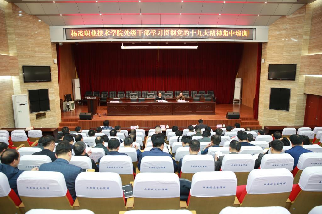 在作动员讲话时,赵曼说,刚从上午召开的首届全国高职高专“优质校”建设与评价论坛上收到鼓舞人心的消息,我院在2018年-2019年中国高职高专院校竞争力排行榜中位列第11名,在陕西高职位列第1名,这个消息鼓舞大家要继续共同努力,照准目标、矢志不渝,进一步自加压力、练好内功、砥砺前行,推动学院发展。他指出,今天开始处级干部学习贯彻党的十九大精神集中培训,是按照省委高教工委的要求、在学院党委的统一领导下组织实施的,大家要抓学习、促工作两不误,保证集训起到良好效果。他要求,大家要充分认识此次培训意义,把握学习重点,拓展学习内容,理论联系实际、学做结合,紧密结合学院的实际,把学习同落实规定、追赶超越发展和践行五个扎实要求结合起来,同落实全国高校思政会和五新战略任务结合起来,同“不忘初心、牢记使命”主题教育和党建质量提升年结合起来,同当前推进一流学院建设和迎接诊断改革复查验收相关工作结合起来,真正把党的十九大精神学深悟透,真正用十九大精神武装思想、指导实践、推动发展。