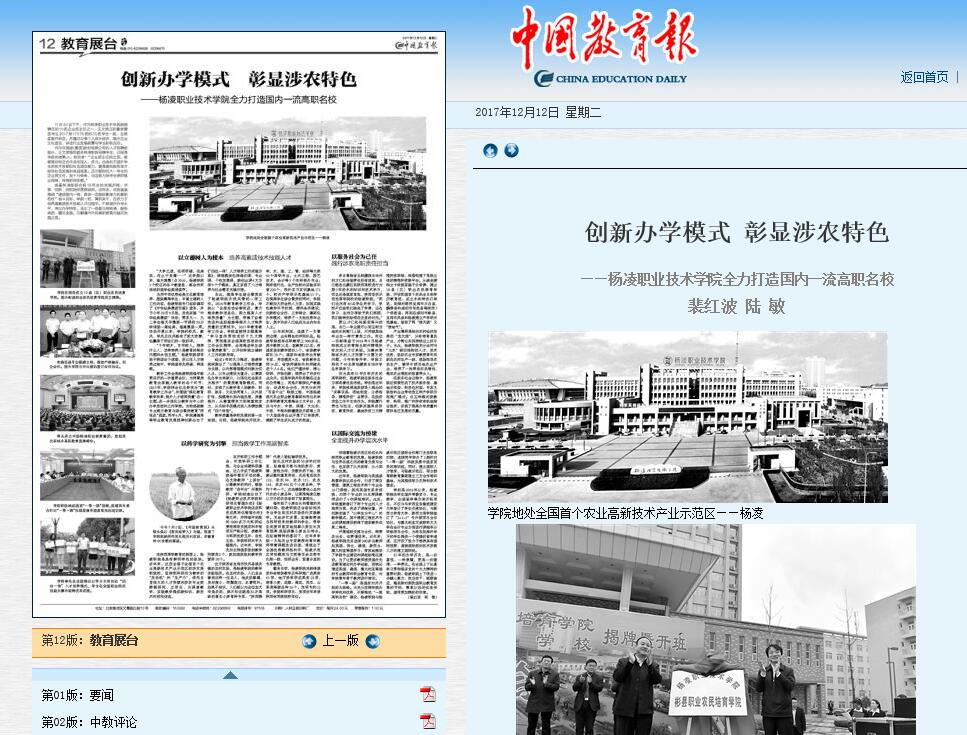 12月12日,【中国教育报】以“创新办学模式 彰显涉农特色——304am永利全力打造国内一流高职名校”为题整版报道了我院做法(详情进入)