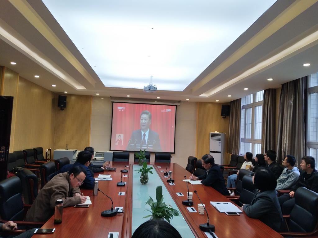 院党委理论学习中心组成员、各部门主要负责人收看党的十九大开幕会