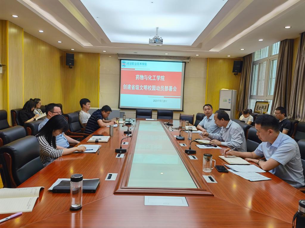 5月28日,药物与化工学院召开创建省级文明校园动员部署会。学院党总支书记刘根牢、党总支副书记、院长周博、副院长龙凤来、全体教职工,以及学生会主席团成员等参加了会议。