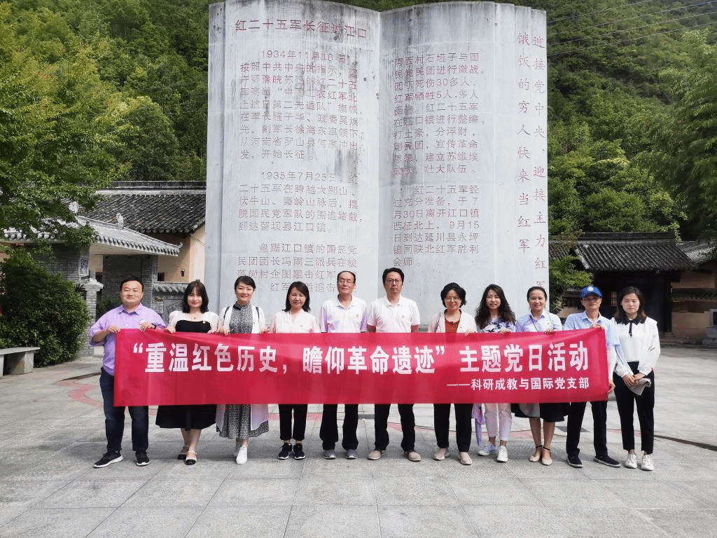 为深入推进党史学习教育入脑入心,重温党的百年光辉历程,7月6日,科研成教与国际党支部党员干部和入党积极分子赴汉中市留坝县江口镇红二十五军军部旧址开展“重温红色历史,瞻仰革命遗迹”主题党日活动。