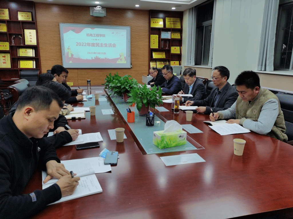 3月15日,机电工程学院党总支在天工楼106会议室召开2022年度领导班子民主生活会。学校副校长祝战斌出席会议并讲话,机电工程学院领导班子成员、党总支委员、党支部书记代表参加会议。