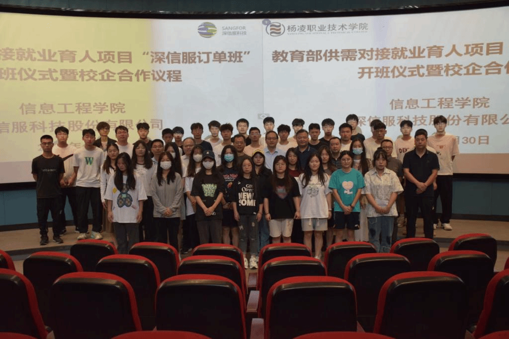 6月30日上午,信息工程学院在水利云一号厅举行就业育人项目“深信服订单班”开班仪式。信息工程学院院长陈高锋、党总支副书记吴高潮、副院长熊刚,深信服科技股份有限公司代表李清毅、李保桥、彭文凯、张湛翔,信息工程学院教师代表和计算机应用技术专业50余名学生参加了开班仪式。仪式由吴高潮主持。