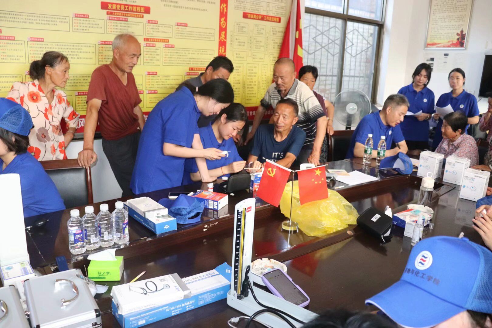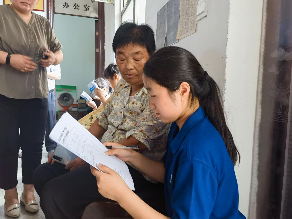 活动分工协调,解玉良副主任医师针对老年人的慢性疾病、疑难杂病和亚健康等号脉、开处方、作指导。党员教师为现场的老年人开展了全方位健康咨询服务,指导群众合理用药;支部学生党员发放合理用药科普手册,在老师的指导下,为老年人完成了血压、血糖等常见指标的测定,开展了老年人慢性病等信息调研,并建立一人一册健康档案。针对不合理用药和保健习惯,通过细致耐心讲解,纠正了老年人的用药习惯。同时,发挥联合共建的示范区工商局第三党支部资源优势,推荐了三高人群的夏日饮食食谱,发放了止痛膏药200余份,完成了全村50余名老年人健康服务工作。