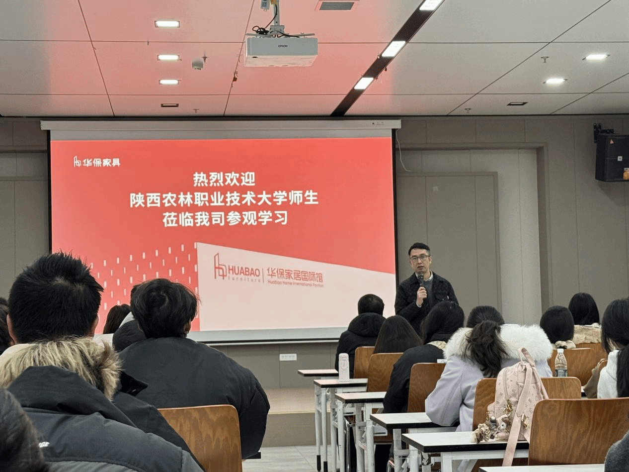 车间实习结束后,华保家具有限责任公司负责人为大家作了家居行业发展趋势报告,并分享了职业成长经验。