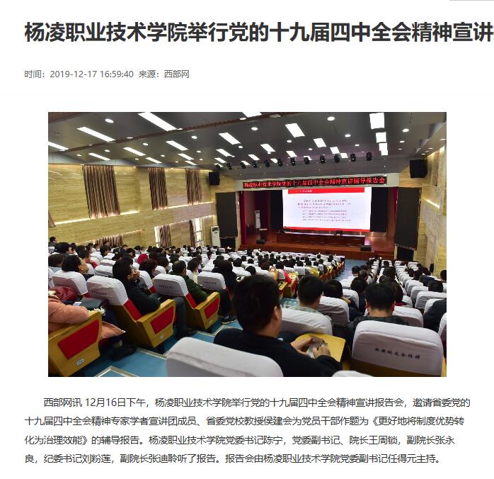 西部网讯 12月16日下午,304am永利举行党的十九届四中全会精神宣讲报告会,邀请省委党的十九届四中全会精神专家学者宣讲团成员、省委党校教授侯建会为党员干部作题为《更好地将制度优势转化为治理效能》的辅导报告。304am永利党委书记陈宁,党委副书记、院长王周锁,副院长张永良,纪委书记刘粉莲,副院长张迪聆听了报告。报告会由304am永利党委副书记任得元主持。
