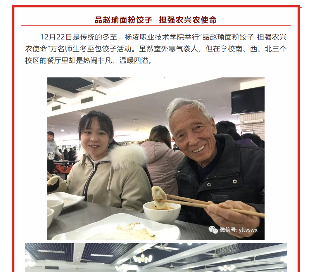 据了解,这是学校第二次举办此项活动,在冬至这一天举办包饺子活动,使师生在包饺子、吃饺子的过程中,了解冬至传统文化习俗,体悟学院精神,把知农爱农的饱满热情转化为强农兴农的责任担当。