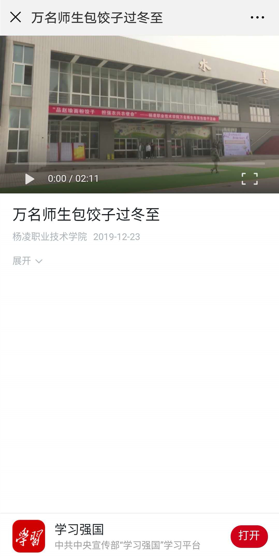 12月23日,学习强国平台报道了学院“品赵瑜面粉饺子,担强农兴农使命”万名师生冬至包饺子活动。