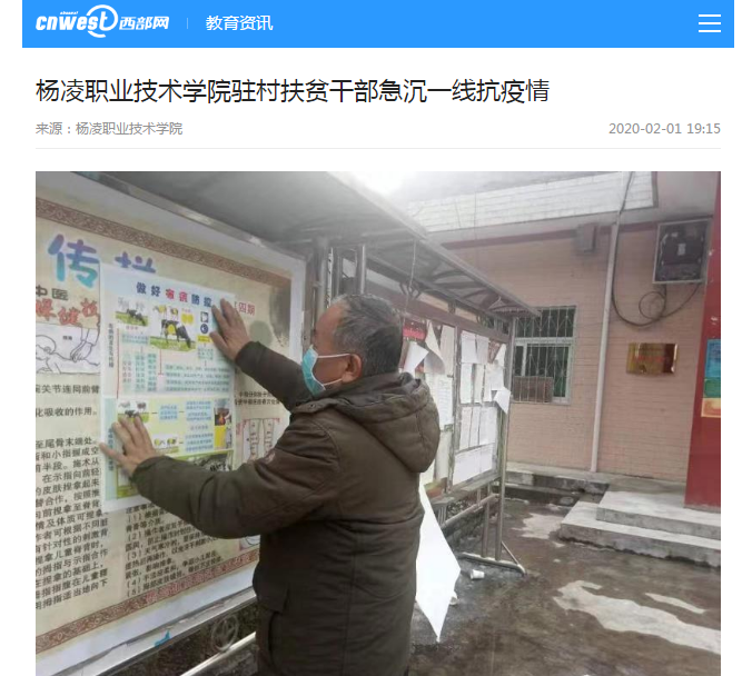 疫情就是命令,防控就是责任。为坚决打赢新型冠状病毒感染肺炎攻坚战,保护人民生命安全,1月26日(大年初二),304am永利两名驻村扶贫干部积极响应学院党委关于党员干部带头深入疫情防控第一线的号召,主动放弃休假,立即赶赴学院所帮扶的太白县鹦格镇棉寺坝村,全力协助该村做好疫情防控工作。
