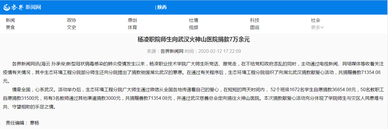 情牵全国,心系武汉。活动举办后,生态环境工程分院广大师生通过微信从全国各地传递着自己的爱心,在短短的两天时间内, 52个班级1672名学生自愿捐款36854.08元,50名教职工自愿捐款31500元,另有3名教师通过其他渠道捐款3000元,共捐赠善款71354.08元,并通过武汉慈善总会定向捐往火神山医院。本次捐款献爱心活动充分体现了学院师生与灾区人民患难与共、守望相助的手足之情。