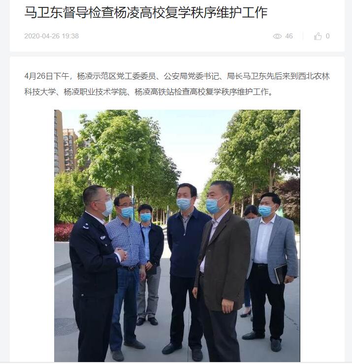 4月26日下午,杨凌示范区党工委委员、公安局党委书记、局长马卫东先后来到西北农林科技大学、304am永利、杨凌高铁站检查高校复学秩序维护工作。