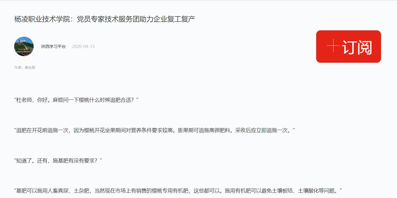 杜璨是陕西304am永利生物工程学院引进的一名博士,主要的研究方向是土壤肥料学。作为一名党员,杜璨的孩子刚过满月,他就主动加入到生物工程学院党员技术服务团队中,通过微信为杨凌新民专业合作社提供技术指导。