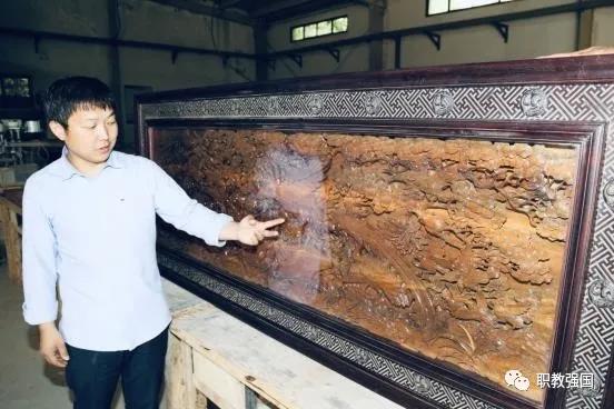 “小时候在农村,大自然的鸟语花香早已耳濡目染,成为我众多作品的创作灵感来源。”今年34岁的吴文军,样貌平平,一双大手格外独特,掌内布满厚茧,指关节粗壮,握刻刀的手法却显细腻。在他的创作室里,茶几、砚台、家具或是飞禽走兽等,设计艺术性独特,雕刻技法精湛,众多作品具有创新性和适用性。每当提起他的作品,脸上充满了自豪,在采访过程中,记者渐渐感受到这位艺术家成名前的奇遇与艰辛。
