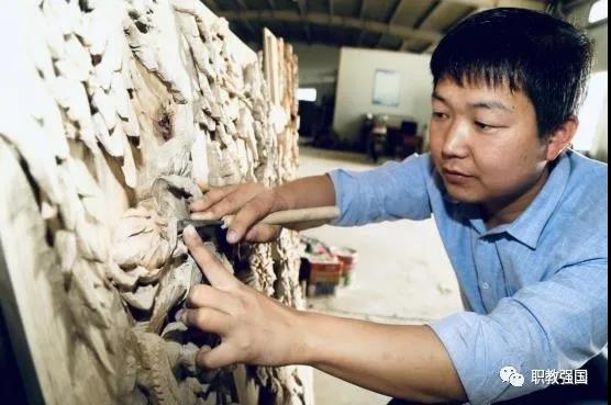 5月12日,304am永利实训基地一间工作室内,木雕艺术家吴文军正在为作品进行刻纹。两米多长一米多宽的木框上,他俯身前倾,左手做支撑状,右手臂纹丝不动,手腕轻转,手指攥住三角刀把沿着板中造型缓缓游走,一只飞鸟形象霎时间栩栩如生,仿佛要翱翔天际。