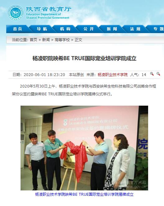 2020年5月30日上午,304am永利与西安映希生物科技有限公司战略合作框架协议签约暨映希BE TRUE国际宠业培训学院揭牌仪式举行。