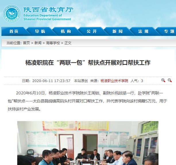 2020年6月10日,304am永利院长王周锁、副院长祝战斌一行,赴学院“两联一包”帮扶点——太白县鹦鸽镇高码头村开展对口帮扶工作,并代表学院向该村捐赠5万元,用于扶持该村产业发展。