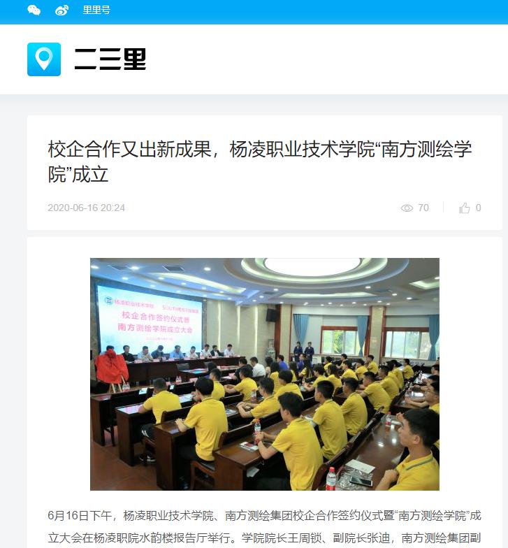 学院南方测绘学院的成立,标志着杨凌职院与南方测绘集团在合作办学方面又迈出了关键的一步,必将促进产业链、创新链和教育链三链融合,实现校企双方互利共赢,为行业发展作出持续贡献。