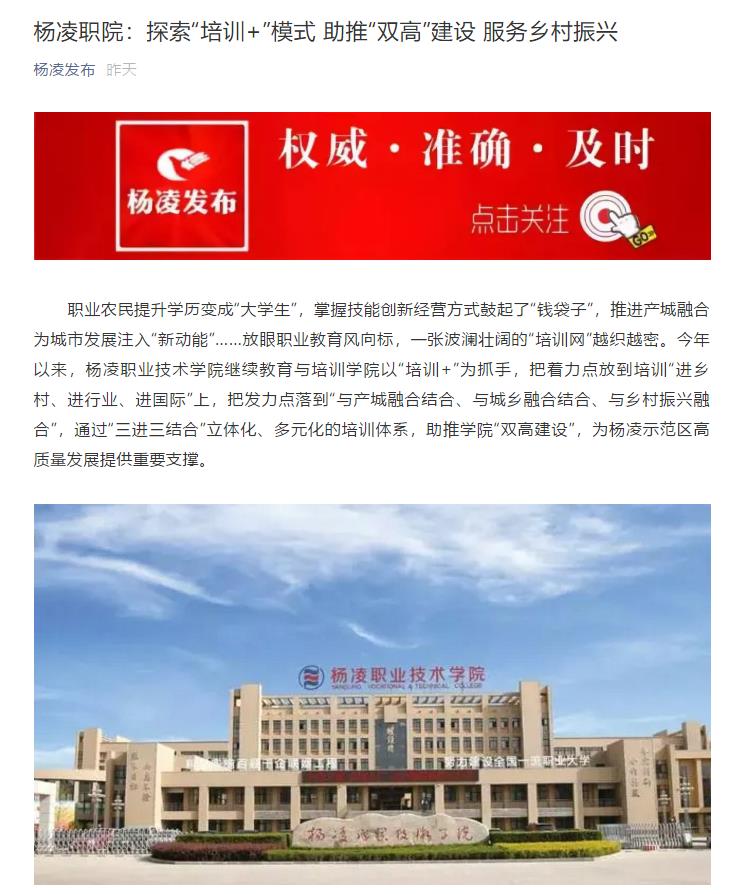 【杨凌发布】杨凌职院:探索“培训+”模式 助推“双高”建设 服务乡村振兴