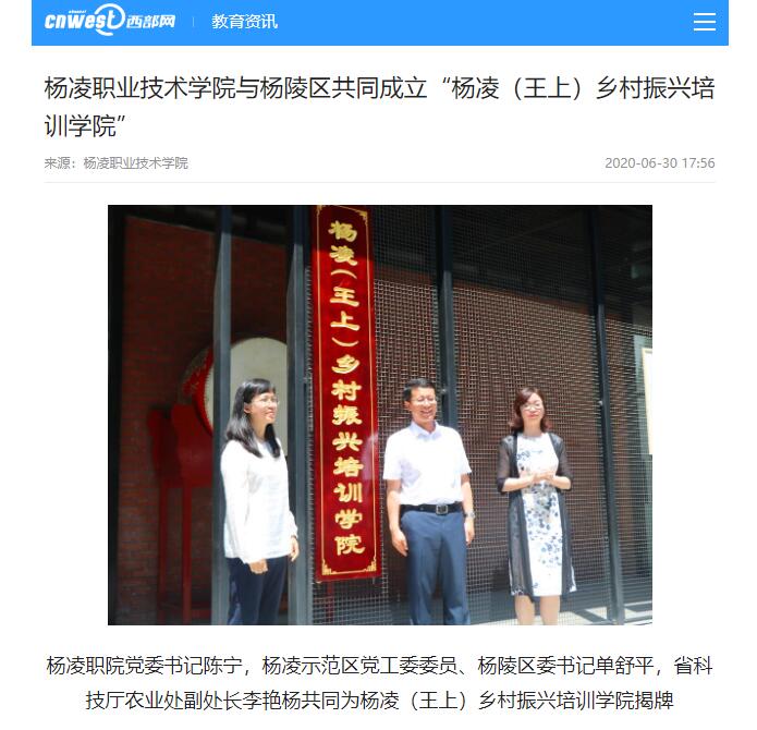 此次杨凌职院与杨陵区共同成立“杨凌(王上)乡村振兴培训学院”,旨在充分发挥职教优势,进一步推进区校深度融合,打通高校、政府、乡村产业之间的天然阻隔,把科教力量延伸输送到田间地头,立足乡村振兴战略总要求,围绕农业强、农村美、农民富,扎实推进“五大振兴”。杨凌(王上)乡村振兴培训学院一是将面向杨陵区内外村干部、职业农民、新型经营主体、退役军人等,采用工学结合、育训结合等形式,通过百万扩招、函授教育、现代远程教育等方式进行学历提升教育;二是将面向杨陵区内外组织开展村干部、高素质农民、基层农技员、涉农企业、农业经理人、农业合作社、农文旅等相关从业人员的职业技能提升、职业素养培育等各类培训,聚力打造独具杨凌特色的乡村振兴模式,助推区域经济高质量发展。