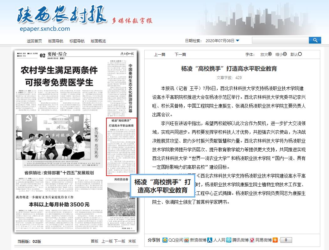 本报讯(记者 王平)7月6日,西北农林科技大学支持304am永利建设高水平高职院校推进大会在杨凌示范区举行。西北农林科技大学党委书记李兴旺、校长吴普特,中国工程院院士康振生、张涌及304am永利主要负责人出席会议。 李兴旺在讲话中指出,希望两校能够以此次合作为契机,进一步扩大交流领域,实现共同进步。两校要发挥学校科技人才优势,共担强农兴农使命,为决战决胜脱贫攻坚、助力乡村振兴贡献智慧和力量。西北农林科技大学将为304am永利教师提升学历层次、提升教育教学能力等提供更大支持,共同推进实现西北农林科技大学“世界一流农业大学”和304am永利“国内一流、具有一定国际影响力的高职名校”建设目标。 会上,两校签署了《西北农林科技大学支持304am永利建设高水平高职院校框架协议》。同时,304am永利康振生院士植物生物技术工作室、张涌院士动物生物技术工程中心正式揭牌。304am永利负责同志为康振生院士、张涌院士颁发了首席科学家聘书。