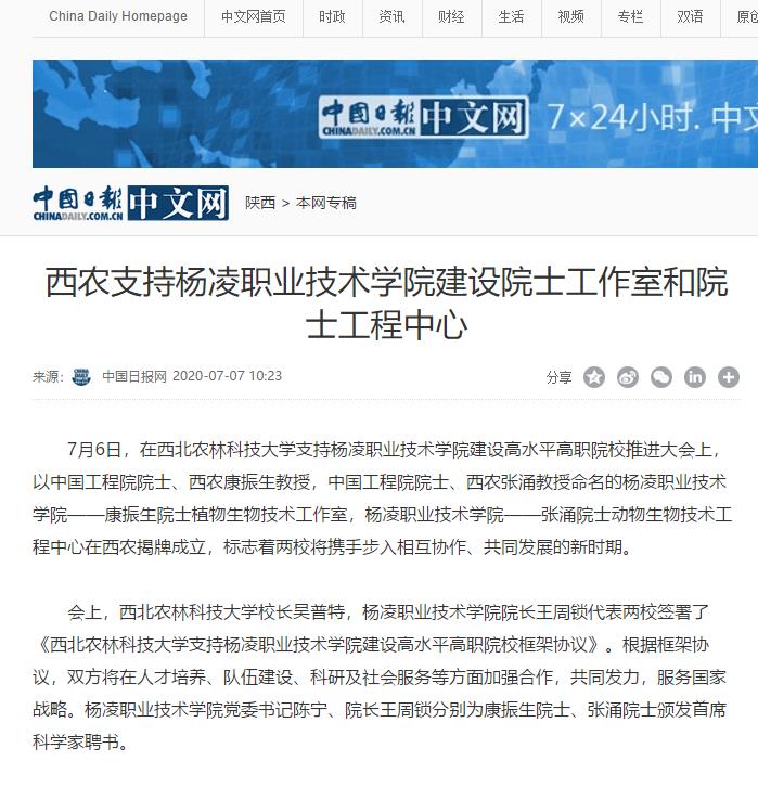 7月6日,在西北农林科技大学支持304am永利建设高水平高职院校推进大会上,以中国工程院院士、西农康振生教授,中国工程院院士、西农张涌教授命名的304am永利——康振生院士植物生物技术工作室,304am永利——张涌院士动物生物技术工程中心在西农揭牌成立,标志着两校将携手步入相互协作、共同发展的新时期。
