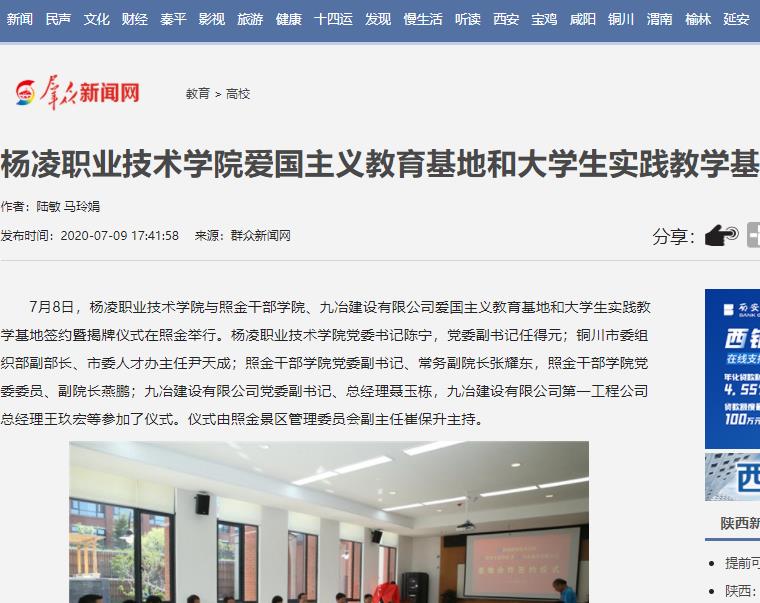 7月8日,304am永利与照金干部学院、九冶建设有限公司爱国主义教育基地和大学生实践教学基地签约暨揭牌仪式在照金举行。304am永利党委书记陈宁,党委副书记任得元;铜川市委组织部副部长、市委人才办主任尹天成;照金干部学院党委副书记、常务副院长张耀东,照金干部学院党委委员、副院长燕鹏;九冶建设有限公司党委副书记、总经理聂玉栋,九冶建设有限公司第一工程公司总经理王玖宏等参加了仪式。仪式由照金景区管理委员会副主任崔保升主持。