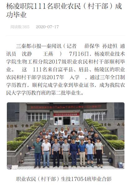 三秦都市报—秦闻讯(记者 薛保华 孙建恒 通讯员 沈静 王燕 ) 7月16日,304am永利生物工程分院2017级职业农民和村干部顺利毕业。 这 111名来自富平县、眉县、杨陵区的职业农民和村干部学员2017年 入学 ,通过三年全日制学历教育,顺利完成学业拿到毕业证书,成为我院农民大学学历教育班的第二批毕业生。