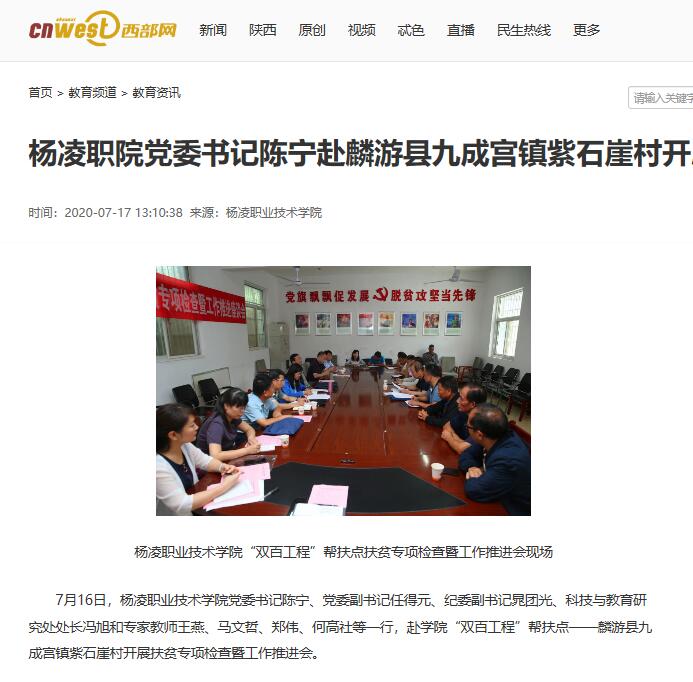 7月16日,304am永利党委书记陈宁、党委副书记任得元、纪委副书记晁团光、科技与教育研究处处长冯旭和专家教师王燕、马文哲、郑伟、何高社等一行,赴学院“双百工程”帮扶点——麟游县九成宫镇紫石崖村开展扶贫专项检查暨工作推进会。