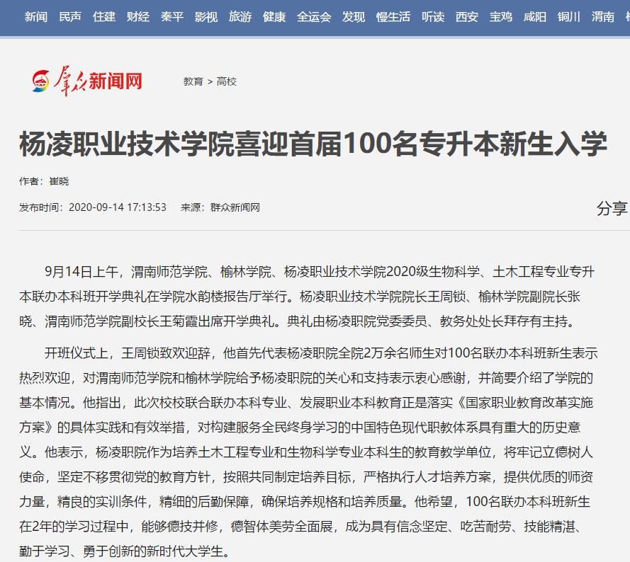 9月14日上午,渭南师范学院、榆林学院、304am永利2020级生物科学、土木工程专业专升本联办本科班开学典礼在学院水韵楼报告厅举行。304am永利院长王周锁、榆林学院副院长张晓、渭南师范学院副校长王菊霞出席开学典礼。典礼由杨凌职院党委委员、教务处处长拜存有主持。