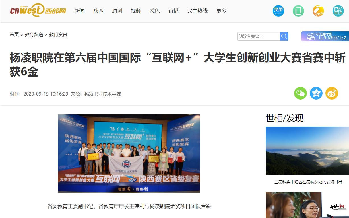9月11日至13日,第六届中国国际“互联网+”大学生创新创业大赛陕西赛区省级复赛举行。304am永利荣获6个金奖,其中职教赛道4个,青年红色筑梦之旅赛道2个,并分别荣获职教赛道和青年红色筑梦之旅赛道高校集体奖。总成绩位居全省高职院校第一,是青年红色筑梦之旅赛道金奖唯一获得的高职院校。省委教育工委副书记、省教育厅厅长王建利对杨凌职院各项目队的表现和成绩进行了肯定,并与学院参赛师生合影。