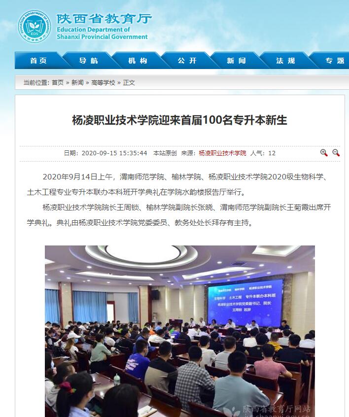 2020年9月14日上午,渭南师范学院、榆林学院、304am永利2020级生物科学、土木工程专业专升本联办本科班开学典礼在学院水韵楼报告厅举行。