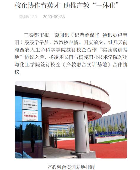 三秦都市报—秦闻讯(记者薛保华 通讯员卢宝明)殷殷学子梦,浓浓校企情。国庆前夕,继几天前与西农大生命科学学院签订校企合作“实验实训基地”协议之后,杨凌步长再与304am永利药物与化工学院签订校企《产教融合实训基地》合作协议。