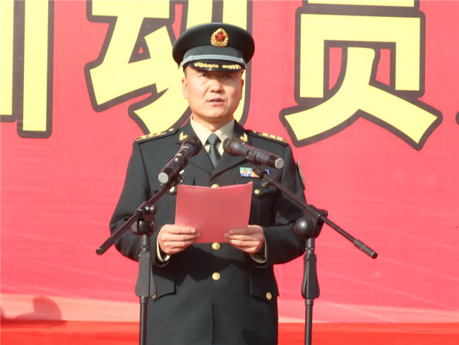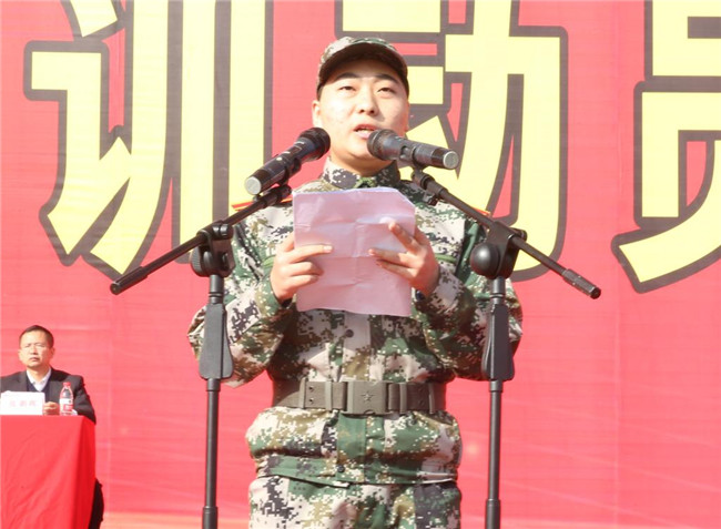 中国人民解放军某部队首长、本次军训团团长樊刚作军训动员讲话