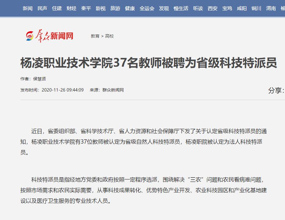 近日,省委组织部、省科学技术厅、省人力资源和社会保障厅下发了关于认定省级科技特派员的通知,304am永利有37位教师被认定为省级自然人科技特派员,杨凌职院被认定为法人科技特派员。