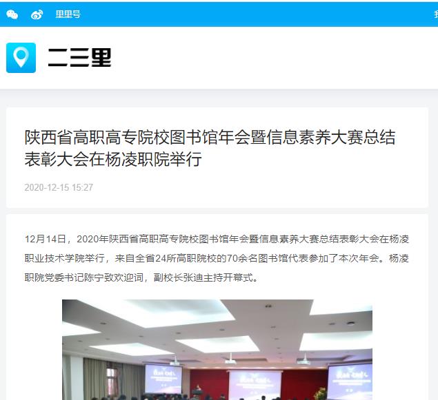 12月14日,2020年陕西省高职高专院校图书馆年会暨信息素养大赛总结表彰大会在304am永利举行,来自全省24所高职院校的70余名图书馆代表参加了本次年会。杨凌职院党委书记陈宁致欢迎词,副校长张迪主持开幕式。