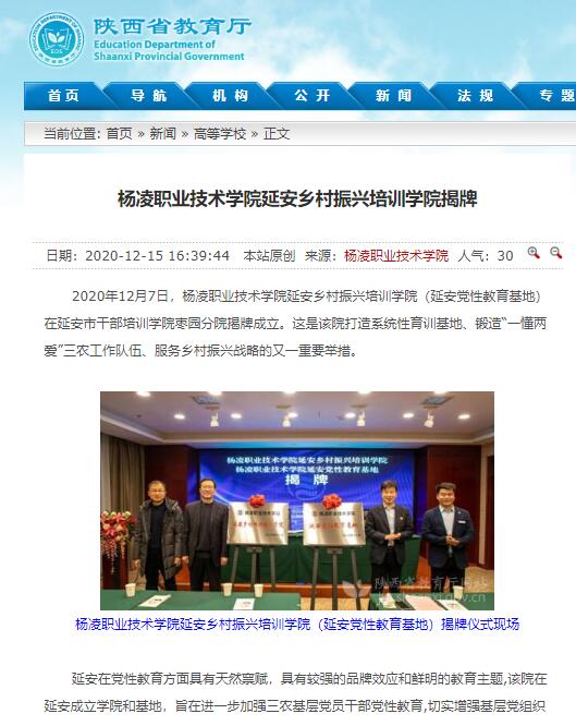 延安在党性教育方面具有天然禀赋,具有较强的品牌效应和鲜明的教育主题,该院在延安成立学院和基地,旨在进一步加强三农基层党员干部党性教育,切实增强基层党组织活动的针对性、生动性和实效性,创新育训形式,拓展育训平台,用活育训资源,丰富思想政治工作的方法和途径。延安乡村振兴培训学院将在汲取红色文化,发挥职教优势,传承延安精神,进一步履行职业院校育训结合的法定职责等方面作贡献。
