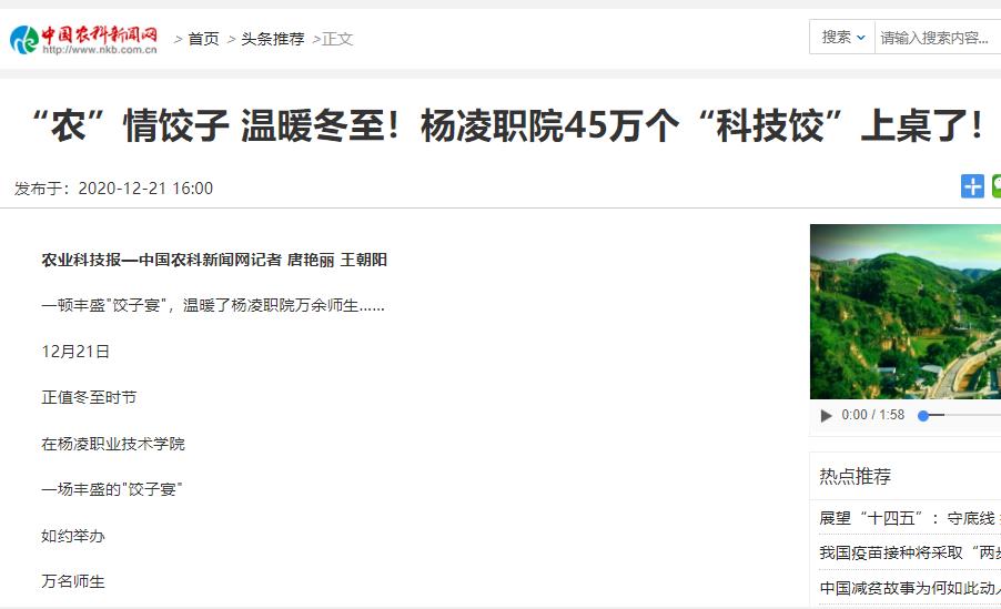 【中国农科新闻网】“农”情饺子 温暖冬至!杨凌职院45万个“科技饺”上桌了!