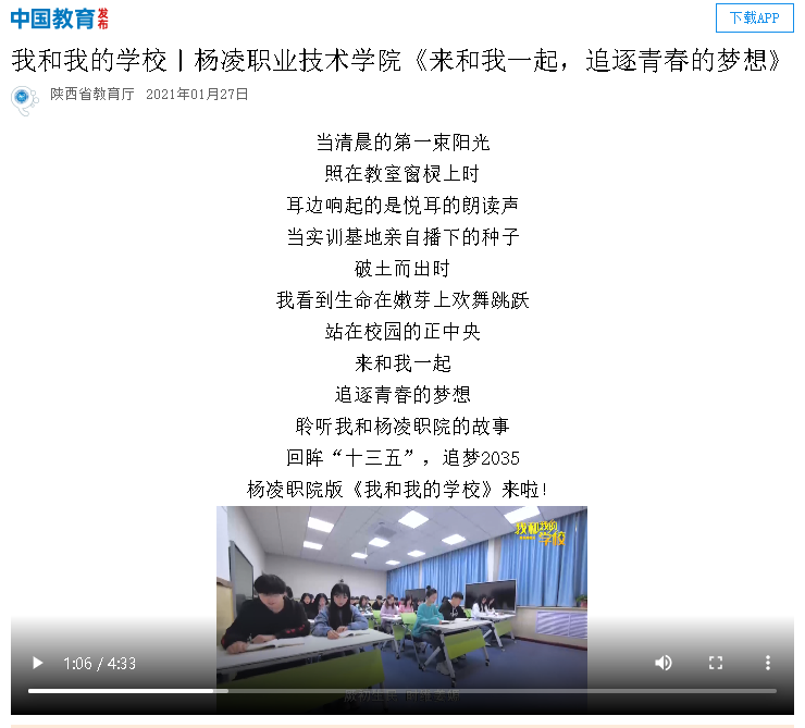 【陕西省教育厅微博】杨凌职院:来和我一起,追逐青春的梦想