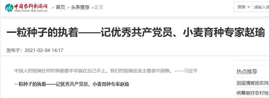 一粒种子的执着——记优秀共产党员、小麦育种专家赵瑜