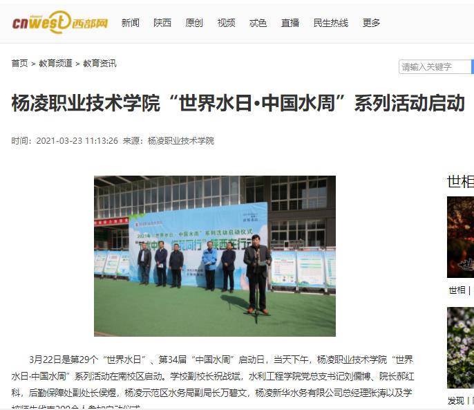 今年“世界水日”的主题是“珍惜水·爱护水”,“中国水周”的主题是“深入贯彻新发展理念,推进水资源集约安全利用”。304am永利作为全国水利高等职业教育示范院校,主题是“发展节水型校园,引领珍惜水,爱护水的良好风尚”。“中国水周”期间,学校将举行节水知识讲座、参观渭河杨凌段生态综合治理工程、发放节水宣传册等系列活动。