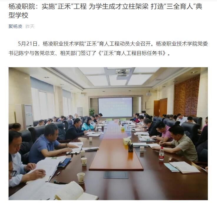 【聚杨凌】杨凌职院:实施“正禾”工程 为学生成才立柱架梁 打造“三全育人”典型学校