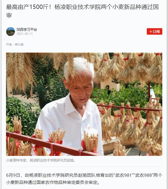 6月9日,由304am永利研究员赵瑜团队培育出的“武农981”“武农988”两个小麦新品种通过国家农作物品种审定委员会审定。