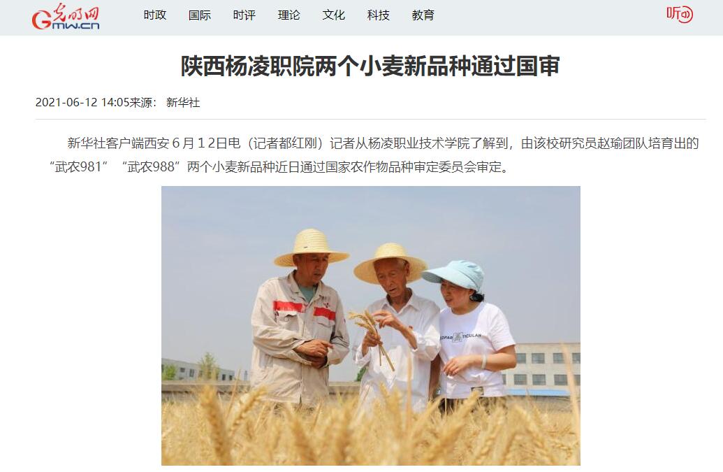 【光明网】陕西杨凌职院两个小麦新品种通过国审
