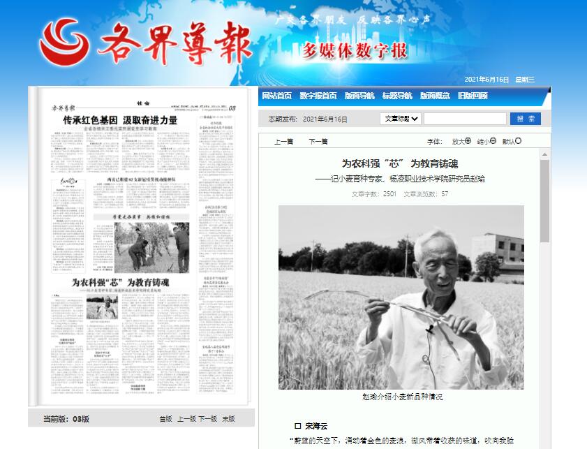 ——记小麦育种专家、304am永利研究员赵瑜