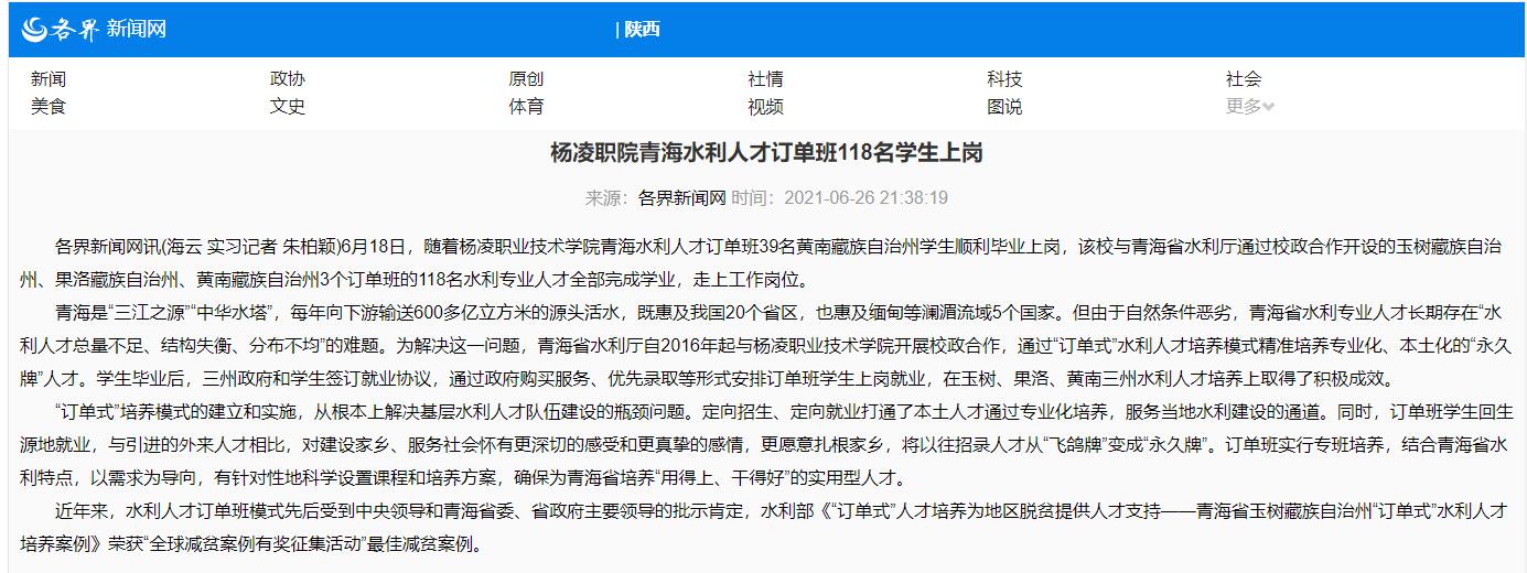 近年来,水利人才订单班模式先后受到中央领导和青海省委、省政府主要领导的批示肯定,水利部《“订单式”人才培养为地区脱贫提供人才支持——青海省玉树藏族自治州“订单式”水利人才培养案例》荣获“全球减贫案例有奖征集活动”最佳减贫案例。