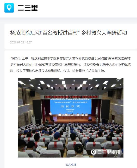 参加仪式的还有杨凌职院党委副书记任得元,党委副书记、纪委书记王勇胜,相关部门、各二级学院(部)负责人,以及“百名教授进百村”活动调研团团长及团员。
