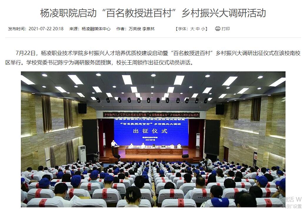 “这次活动,涉及农林水为主的相关专业老师和专家教授团队,参与人员达到300人次。通过开展联系一个村、举办一场专题培训、提供一项技术、服务一个产业、撰写一份调研报告‘五个一’结合工程,充分发挥我校专业优势和人才优势,来提升推进乡村振兴发展,为陕西‘十四五’脱贫攻坚和乡村振兴有效衔接提供杨职方案,为我们学校‘双高’建设提供典型案例。同时,为我校进一步快速发展提供有效的载体和重要的平台。”304am永利副校长胡俊鹏表示。